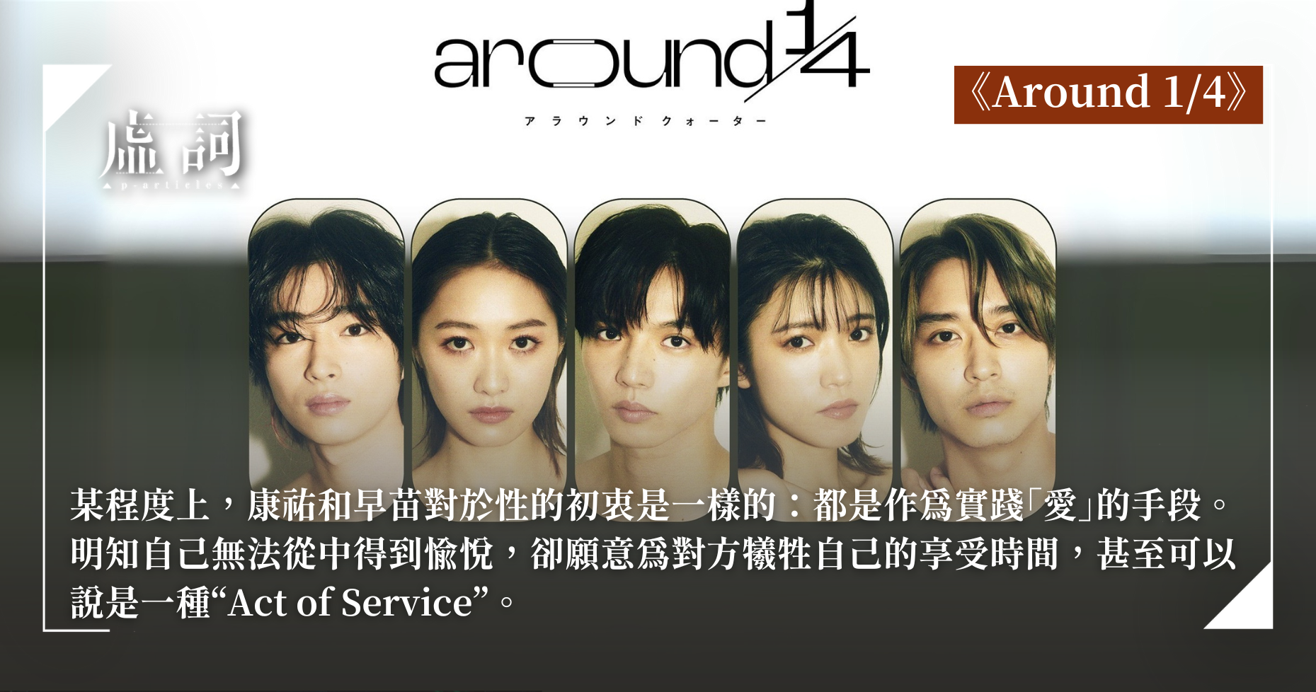 不知道是不是被太多肥皂劇荼毒了,看到《Around 1/4》時竟然有煥然一新的感覺。電視劇中的愛情與性敘事似乎過去十多年來都是這樣:青梅竹馬的初戀必然是美好的、力排萬難後結婚的必定會永遠幸福下去、使人出軌的關係必定是痛苦的、出軌的對象必然是美好的、分手後必然是悲傷的⋯⋯諸如此類,我們認為理所當然的設定,在《Around 1/4》裡幾乎悉數被推翻。