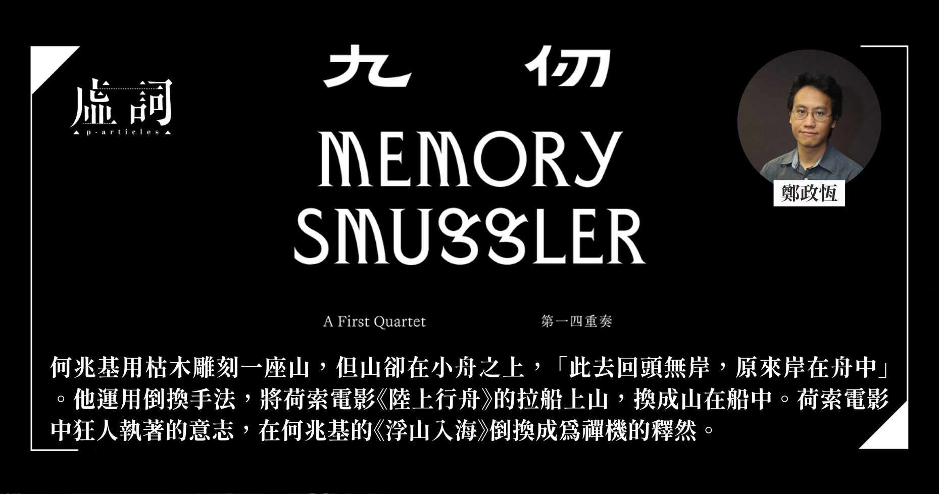 最後,在何兆基的十幀AI生成圖片的寶麗來照片上下,有Fare forward, travellers一句,旅人前行,呼應何兆基的《浮山入海》。《浮山入海》是令人印象深刻的作品,藝術家用枯木雕刻一座山,但山卻在小舟之上,「此去回頭無岸,原來岸在舟中」。何兆基運用倒換手法,將荷索電影《陸上行舟》的拉船上山,換成山在船中。荷索電影中狂人執著的意志,在何兆基的《浮山入海》倒換成為禪機的釋然。