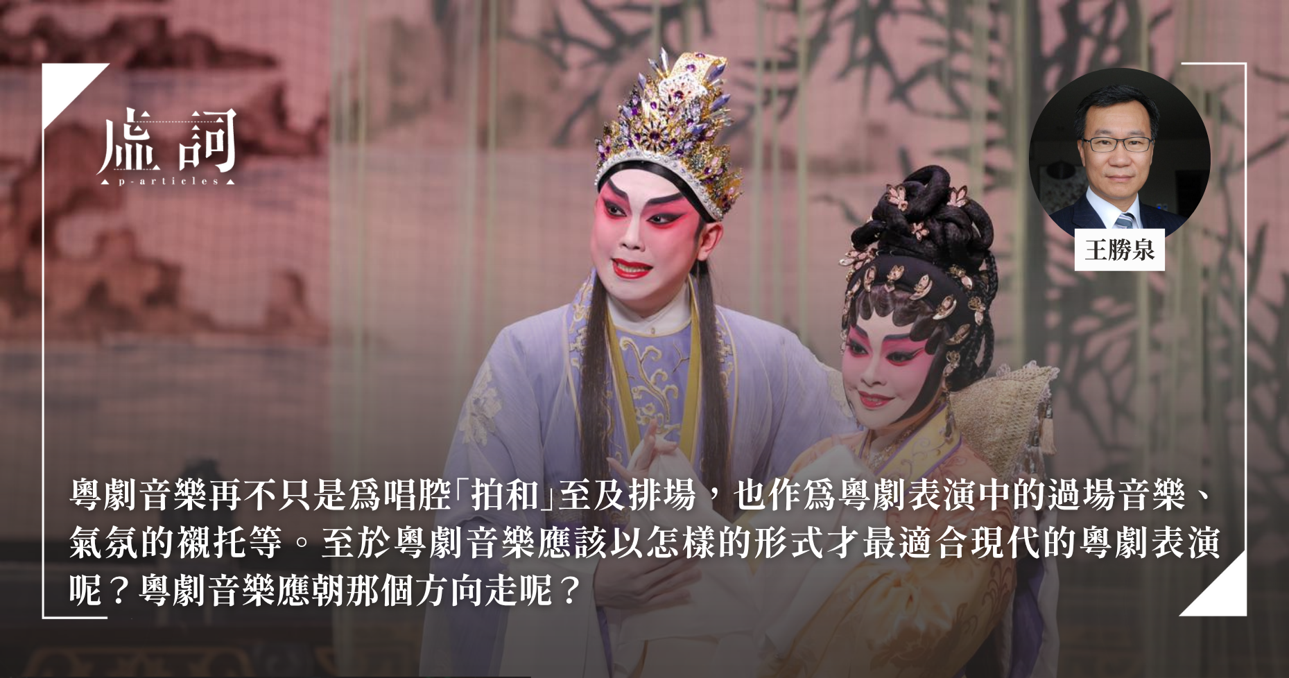 粵劇音樂在最早期主要是為演員的唱腔拍和及排場,由「五架頭」的硬弓組合,到二十世紀二、三十年代的全盤西洋樂器組合,進而中、西樂器混合伴奏,以「交響樂」式的大型樂隊組合,已有過百年的歷史。粵劇音樂再不只是為唱腔「拍和」至及排場,也作為粵劇表演中的過場音樂、氣氛的襯托等。至於粵劇音樂應該以怎樣的形式才最適合現代的粵劇表演呢?粵劇音樂應朝那個方向走呢?這些問題似乎在業界仍未能達到共識,也可能永遠不能達到共識。