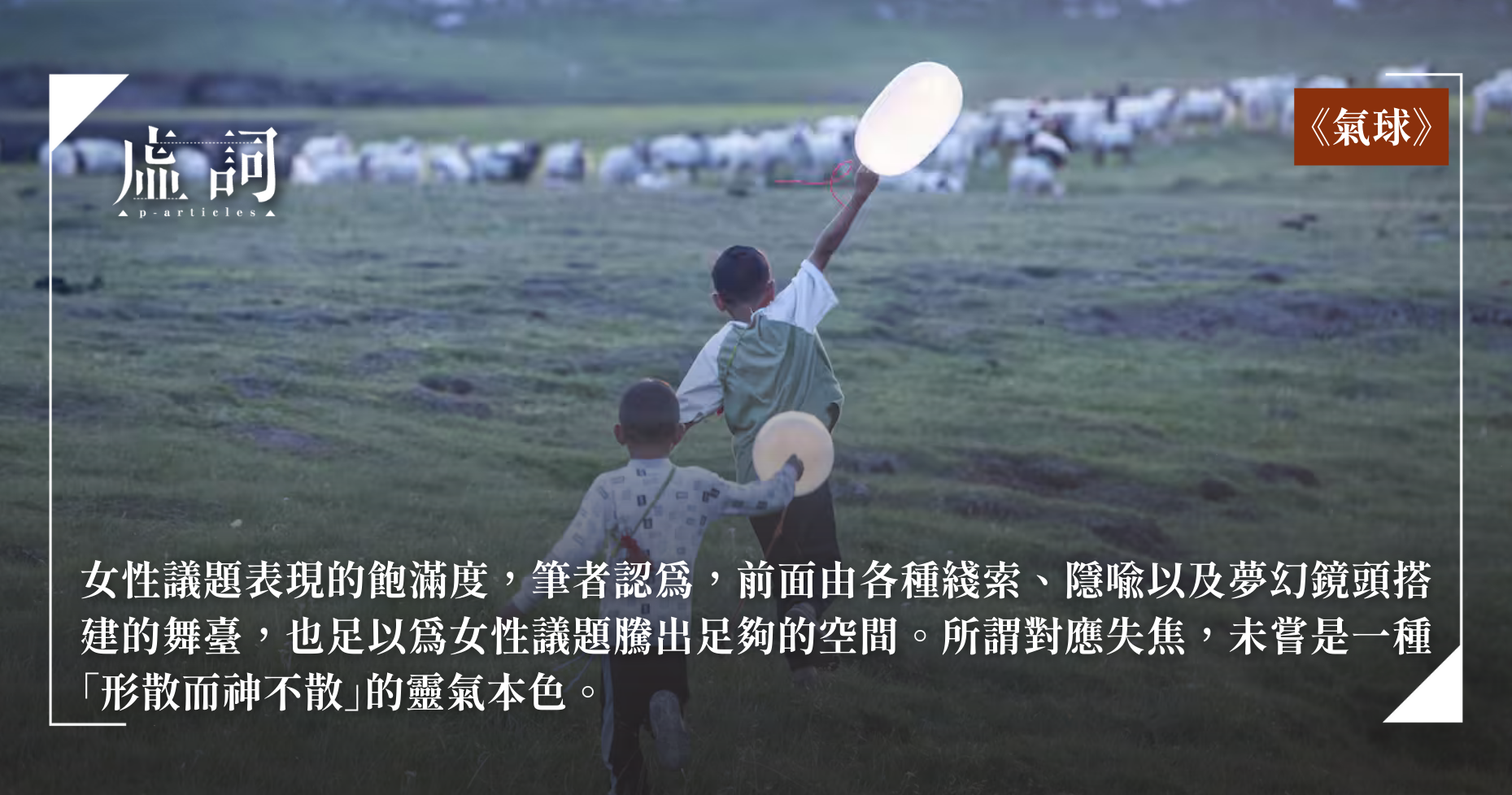 導演獨具的風格,筆者會稱之為一種靈氣,亦指無甚匠氣,而觀看時觀眾會不感覺到電影擁有敘述故事的強烈意識。這種靈氣,很早就見於其處女作《靜靜的嘛呢石》,如紀實片似地拍攝小喇嘛過年回家的日常與寺院的生活。及後,其作品如《塔洛》、《尋找智登美更》、《撞死了一隻羊》等,便多了幾許說故事的意圖,但内裏仍透著一股靈氣——《尋找智登美更》尤其如是,電影的敘述徘徊在老闆對自身年少戀愛的回憶,以及每個地點所遇到的人和事,到最後,也沒有一個對應最初的圓滿解答,而是開放式的,而過去所經歷的,也是無頭無尾的過程。而《氣球》亦保持了這樣的風格與底蘊。