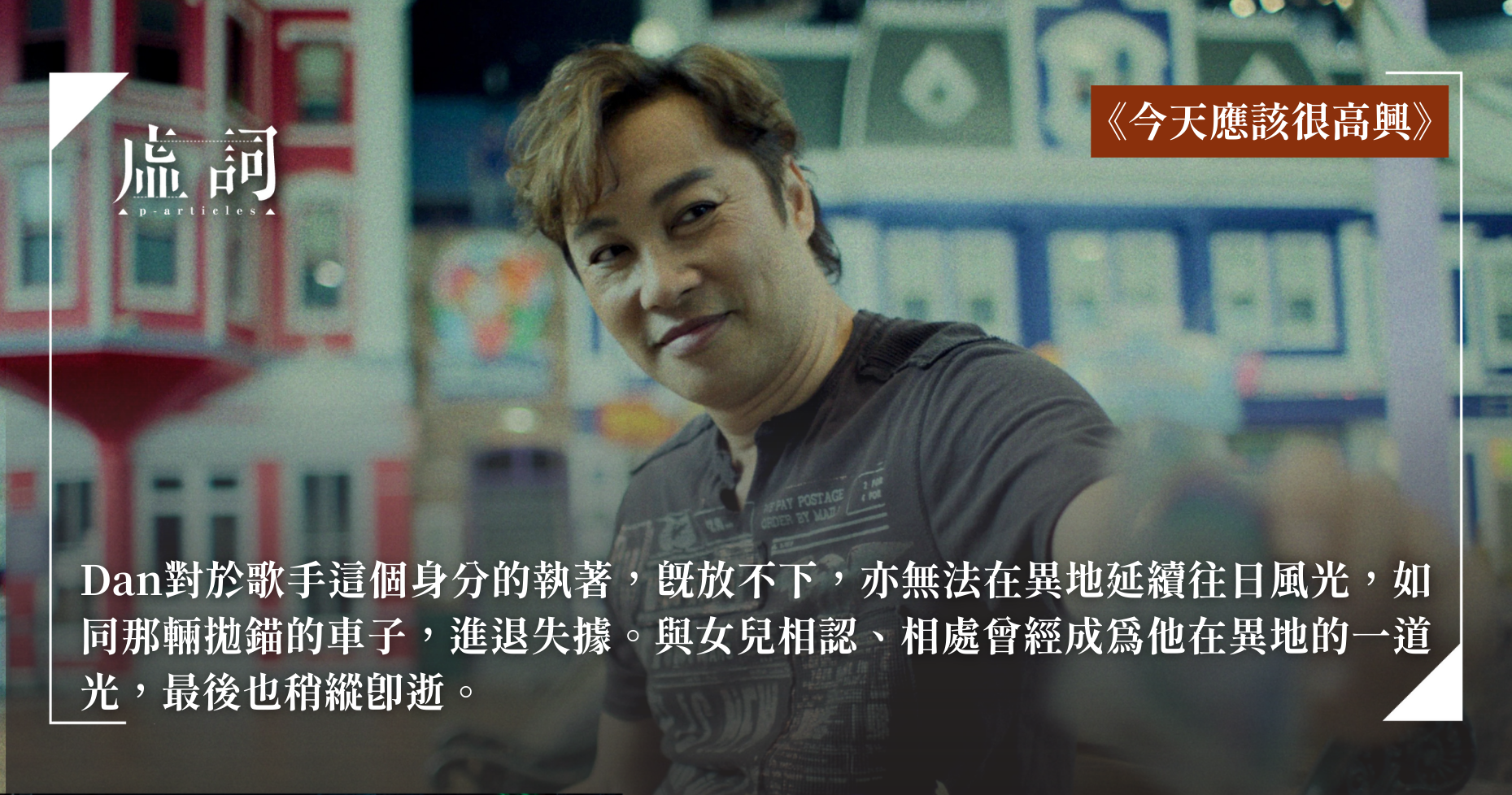 有些人從一個地方遷移到另一個地方,可能只是肉體轉移,所執著之事還停留在舊日故地。電影中Dan是香港八、九十年代紅極一時的歌星,移民外地後,妻子另結新歡。電影並沒有告訴觀眾,這段婚姻走不下去的原因,是因為妻子見異思遷,還是自己在移居外地後的萎靡頹唐。無論如何,不難看見Dan對於歌手這個身分的執著,既放不下,亦無法在異地延續往日風光,如同那輛拋錨的車子,進退失據。與女兒相認、相處曾經成為他在異地的一道光,最後也稍縱即逝。Dan是電影中刻畫得最為深刻的人物,觀眾可以從扮演者譚耀文眼神和臉容上,看見那一代移民者孤獨蒼涼的身影。唯一令筆者不解的是,頹唐過氣的Dan在士多店遇上女店員(也是他的粉絲),並隨即發展戀人關係,後者給予他溫暖和鼓勵。這一安排略顯俗套,若聚焦在身為父親的Dan如何為與女兒重聚而努力,可能會更自然動人。