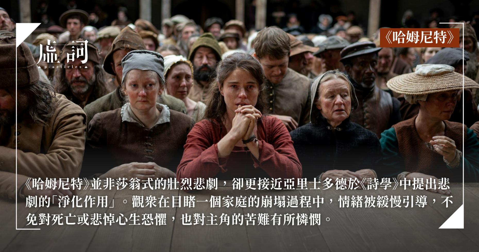 《哈姆尼特》並非莎翁式的壯烈悲劇,卻更接近亞里士多德於《詩學》中提出悲劇的「淨化作用」(catharsis)。觀眾在目睹一個家庭的崩塌過程中,情緒被緩慢引導,不免對死亡或悲悼心生恐懼,也對主角的苦難有所憐憫。隨著Max Richter的配樂徐徐響起,趙婷讓角色正視死亡。電影娓娓道來的故事,也許會潤澤了觀眾對人性的理解,最終得以抵達一種毫不張揚的淨化。