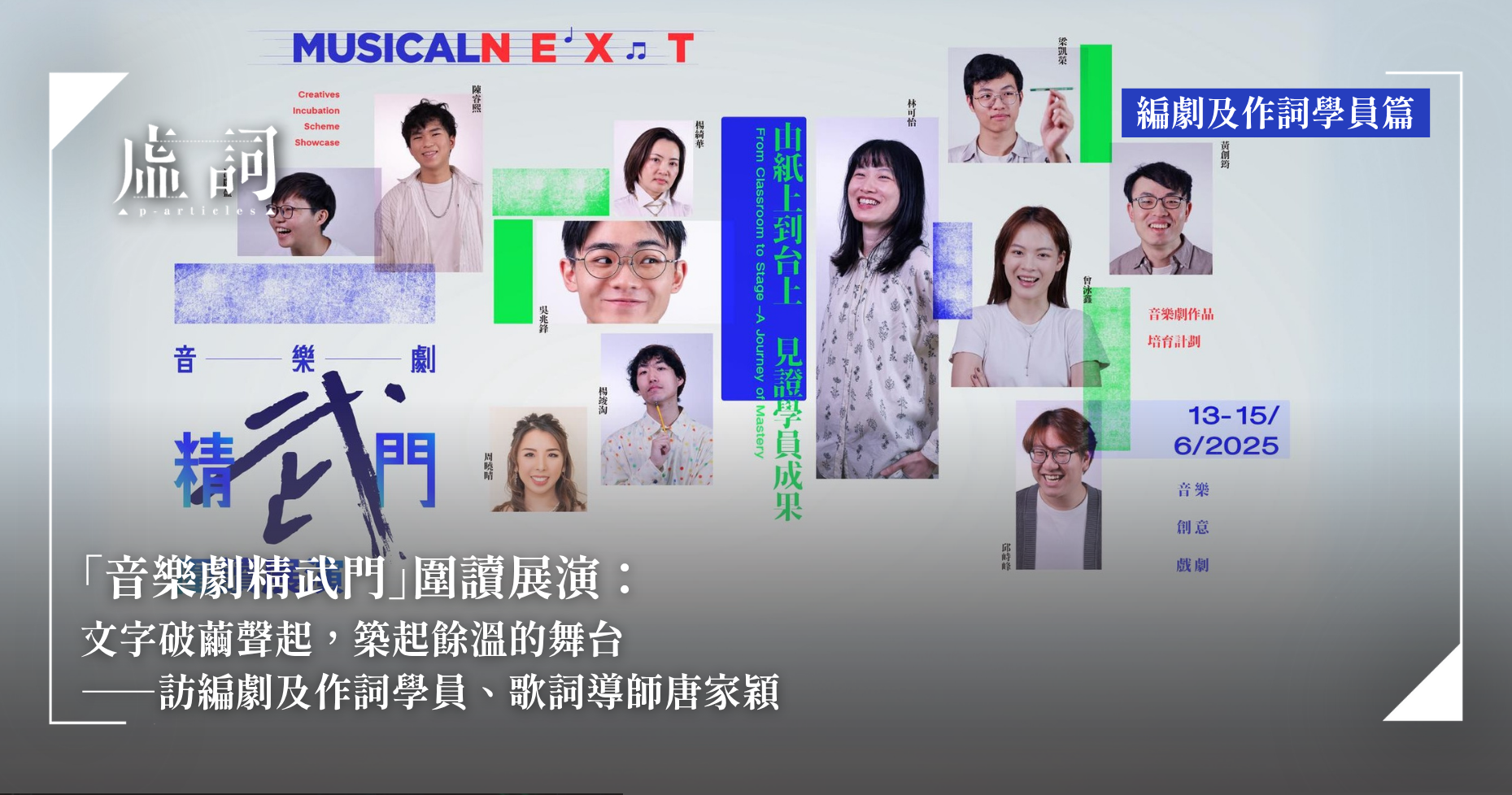 「音樂劇精武門」音樂劇作品培育計劃旨在為業界培育創作人才及富潛力的作品,匯聚了11位於2024年招募的新晉編劇、作曲及作詞人才。同年10月起, 學員們參與了為期三個月的專業培訓,包括大師班、創作工作坊和創作導修課等一系列活動,獲得多位資深音樂劇創作人傳授心得和技巧。這些對音樂劇充滿熱誠的新晉創作人分成六組,在導師悉心指導下,從零開始合作創作,最終完成了六部約30分鐘、風格迥異的原創「音樂劇之本」(musical book)。這些作品從青春熾焰的躁動到生命的頓悟,從現實塵世的寫照躍入奇幻夢境,以不同情感交織成獨特故事,並以圍讀形式呈現於觀眾眼前。