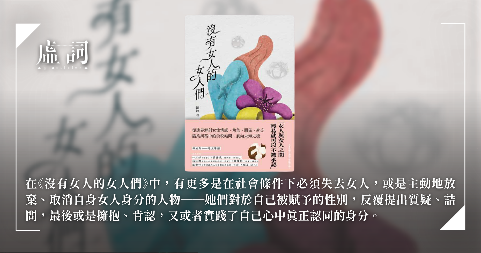 少了預設立場,理解便是可能的。既有理解,我們或可期待人與人之間更加真實的連結,而不僅是讓一切浮於表面,或者,也能避免出於成見而造成的人我之間的斷裂。可以說,渴望理解、也渴望被理解,正是《沒有女人的女人們》寫作的根本動機,也是書名之所以如此命名的原因──透過多元性別視角的書寫,這本小說集,即試圖和《沒有女人的男人們》建立對話的空間。