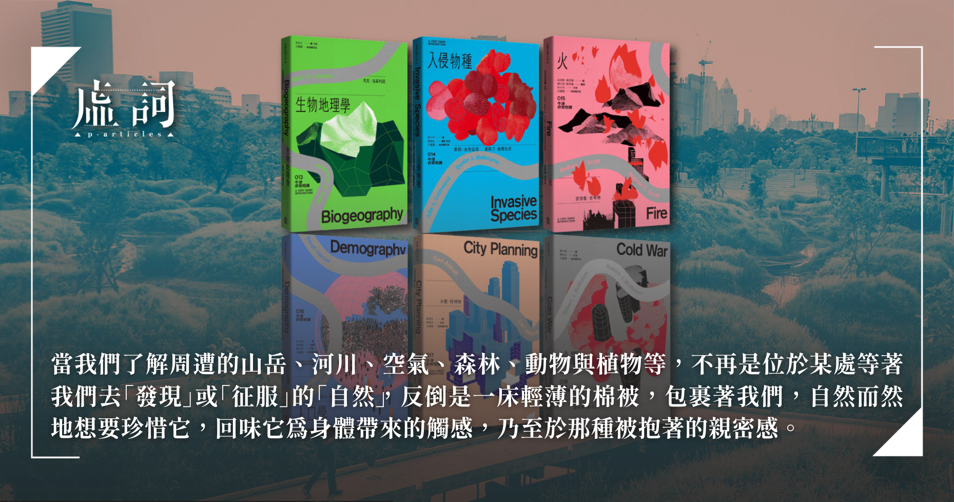 《21世紀的環境課》包含六個主題,同時也是六本小書,分別是《生物地理學》、《入侵物種》、《火》、《都市計劃》、《人口學》與《冷戰》。這是左岸文化編輯室為台灣讀者精心構思的課程,也是繼《20世紀的主義們》、《21世紀的人生難題》後的第三門課。