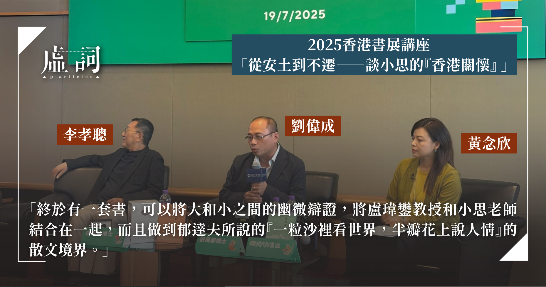 來到活動尾聲,黃念欣重申另外四書絕非舊作重印,而是透過新增文章、主題重組與學術增補,全面呈現小思的創作和研究。一方面涉及數位時代的反思,展現小思與時俱進的觀察,一方面重新歸類小思的飲食文章,呈現小思作為「奄尖食家」的細膩書寫,一方面記錄小思在香港結下的書緣及多年來的讀書經驗。