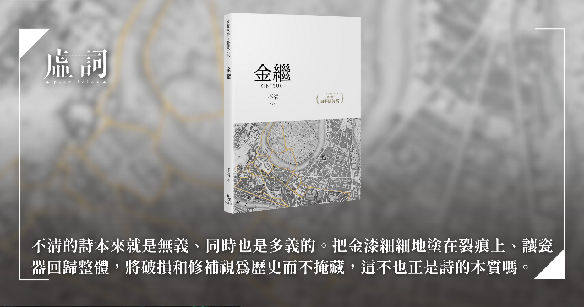 勉強的話,先去讀詩集同名詩〈金繼〉吧。「那麼我們該如何/為已發生的事情尋找新的詞彙?」、「我不知道/秘密如何被散播,風/在秋天的農莊上空揚帆。有些東西/倒下而不值後悔」,這些詩句與金繼這種日本傳統的修復技術如何相通?答案大概不在字裡行間,也不是傳統意義的意在言外,而是暗示讓我們知道,「寫詩」和「製作詩集」本身就是某種意義上的金繼——並非單純的修復,而是將(詞語的、世界的)破碎和不完美轉化為獨一無二的藝術創造。他的詩和詩集都在拒絕標籤,「論詩」、「哲學」、「科學」、「政治」,我想還是先不要這樣做。當然你也可以把所有這些標籤一股腦地貼上去,因為他的詩本來就是無義、同時也是多義的。把金漆細細地塗在裂痕上、讓瓷器回歸整體,將破損和修補視為歷史而不掩藏,這不也正是詩的本質嗎。