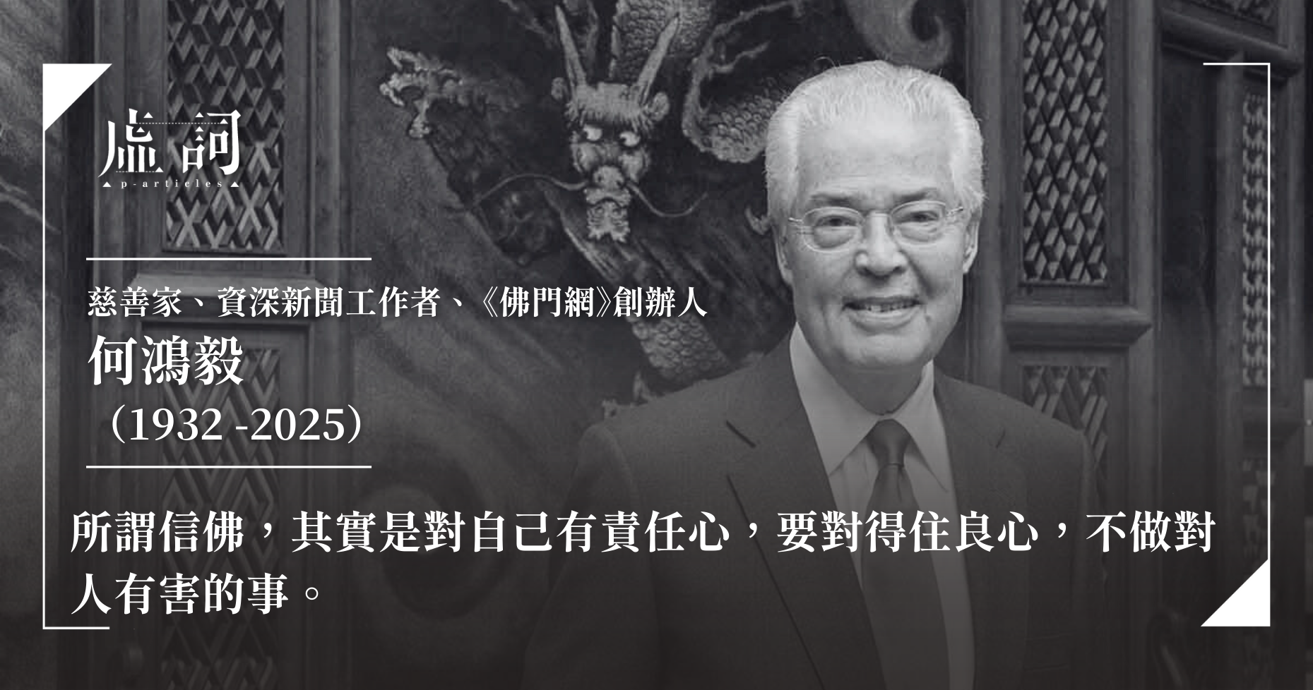 慈善家、資深新聞工作者及加拿大東蓮覺苑創辦人何鴻毅(Robert Hung Ngai Ho),於2025年11月30日在加拿大溫哥華安詳辭世,享耆壽93歲。根據加拿大東蓮覺苑社交媒體公告,家屬惜別禮及火化儀式將於溫哥華舉行,而往生佛事將於12月16日及20日分別在溫哥華及香港舉行。
