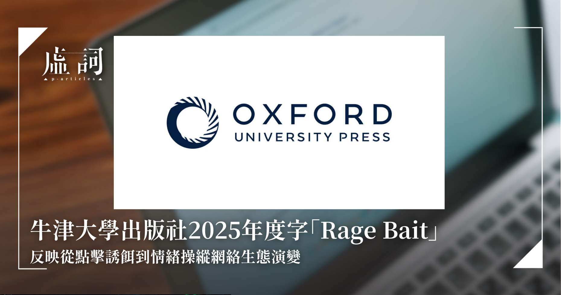 繼劍橋字典(Cambridge Dictionary)早前公布「Parasocial」(單向社會關係)為 2025 年度代表字後,另一權威機構英國牛津大學出版社亦於本月初揭曉今年年度字。「Rage Bait」從三個候選詞彙中脫穎而出當選,中文可翻譯成憤怒誘餌,該詞反映當今的網絡生態已由過去單純激發好奇心的「點擊經濟」,演變為一種劫持情緒、以憤怒換取流量的精密操弄機制。