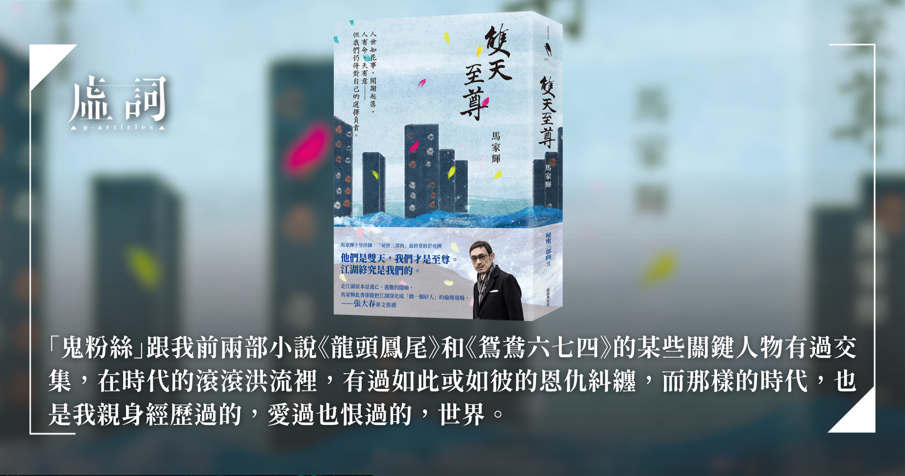 我給「鬼粉絲」取了個名字:韓天恩。《雙天至尊》寫的是韓天恩的一生,也是《龍頭鳳尾》和《鴛鴦六七四》的故事延續,但別擔心,即使你沒讀過它們,這部小說也單獨可看,讀完,你必忍不住立即追讀前面兩部作品;而如果你早已讀過,應會馬上把它們找出來重看。