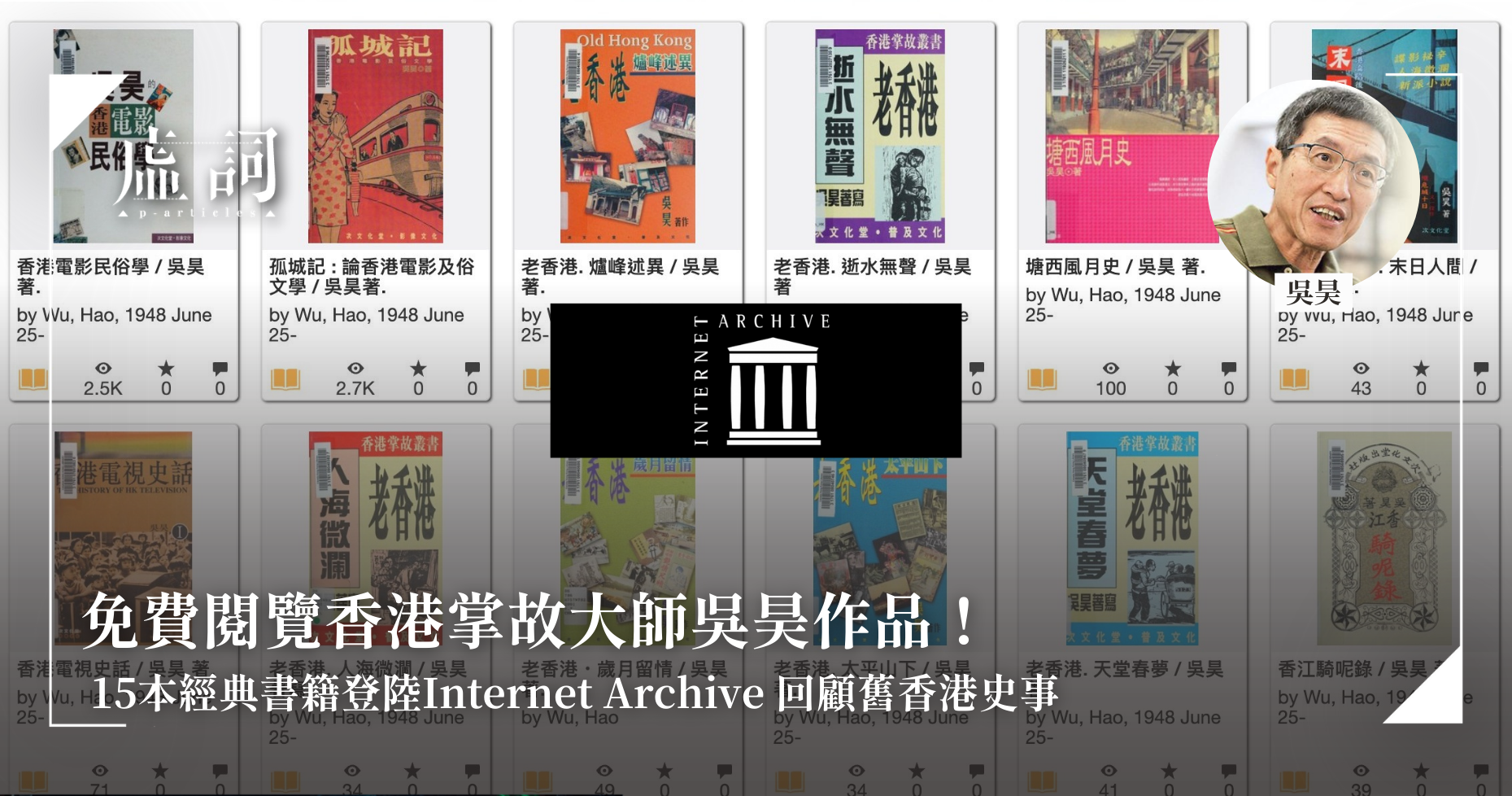 香港歷史風俗掌故專家、著名作家及編劇吳昊,自 1997 年起出版大量關於香港掌故、通俗文化、電視電影及民間玩物的著作,對記錄本地文化貢獻良多。多倫多大學「Richard Charles Lee Canada-Hong Kong Library 利銘澤典宬」(下稱「RCL」)於 1 月 27 日在社群媒體宣布,已掃描吳昊於「次文化堂」出版的 15 部著作,並上傳至「Internet Archive」網站,供大眾免費閱讀。