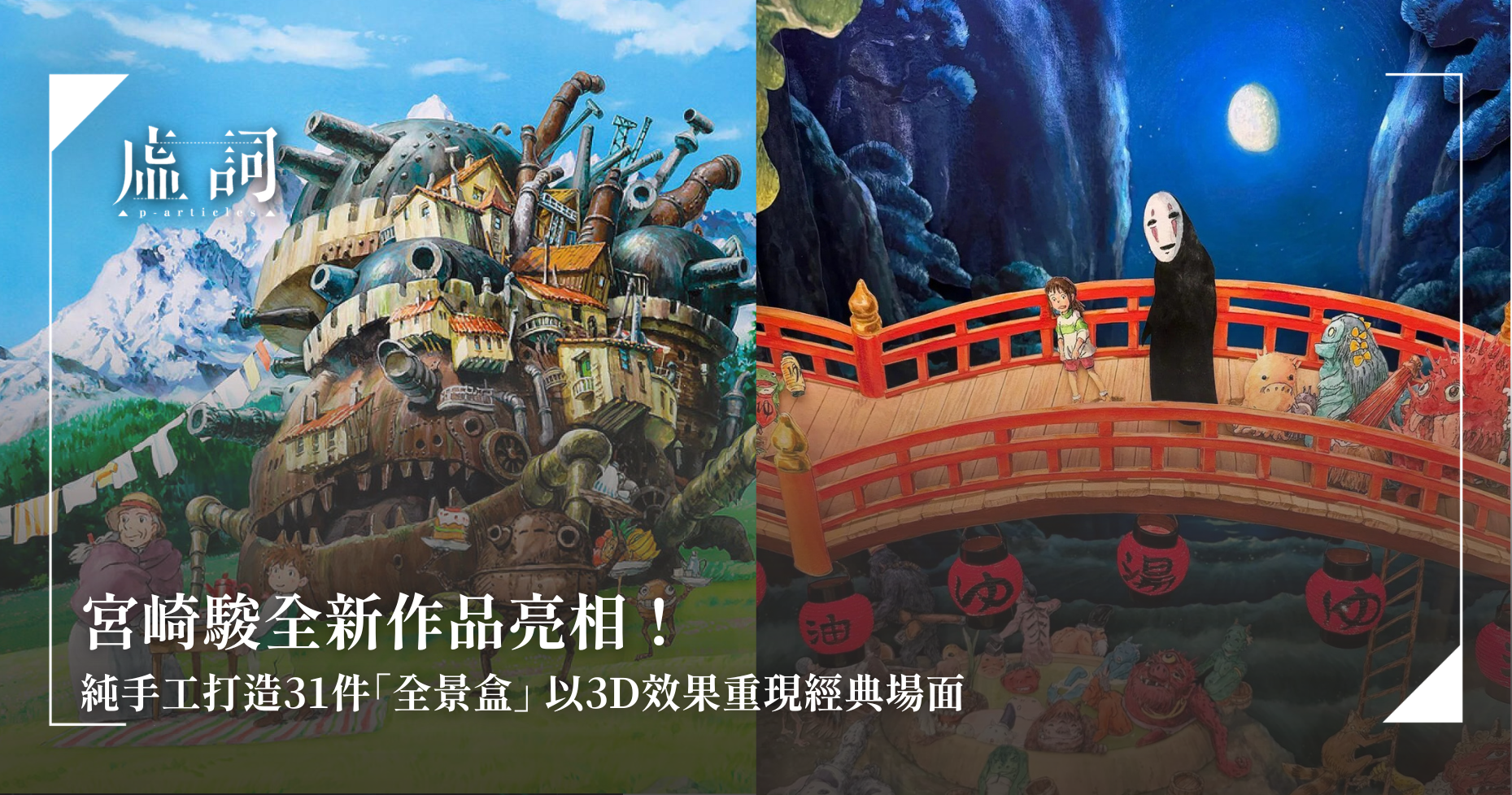 吉卜力工作室於早前舉行記者會,宣布日本國寶級動畫大師宮崎駿的最新立體藝術作品「全景盒」,將於2026年7月8日起在愛知縣「吉卜力公園」內的吉卜力大倉庫企劃展中公開亮相。這系列共有31件立體紙雕作品,均由宮崎駿親手以手工剪裁與繪製的方式完成,重現他半世紀以來多部經典動畫的代表場景。