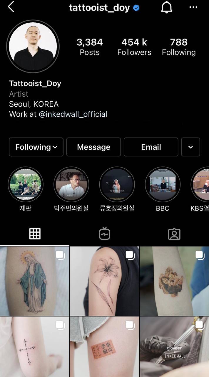 小器簡評:小妹不諳韓語,偏在Instagram上尋獲這光頭型格Oppa,曾為EXO成員和畢彼特紋身,去年成立南韓首個紋藝工會,追求紋身合法化。紋身藝術不應被醫學美容統戰,願早日正名。