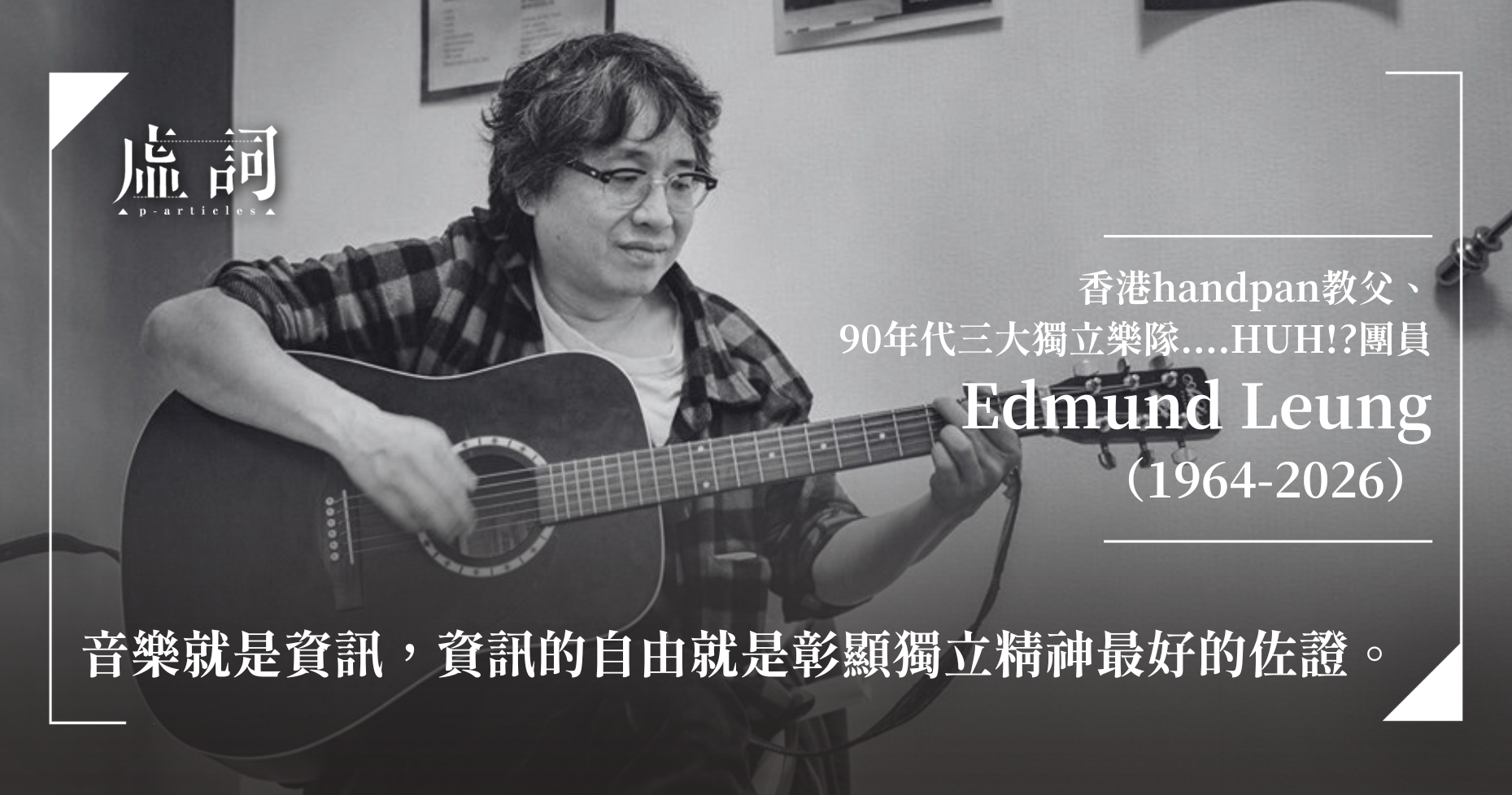 香港音樂媒體工作者袁智聰於今日在社交媒體發文,表示香港傳奇音樂家、90年代三大獨立樂隊....HUH!?團員,有handpan教父之稱的Edmund Leung(梁卓堃)於2月17日凌晨時分逝世,享年61歲。
