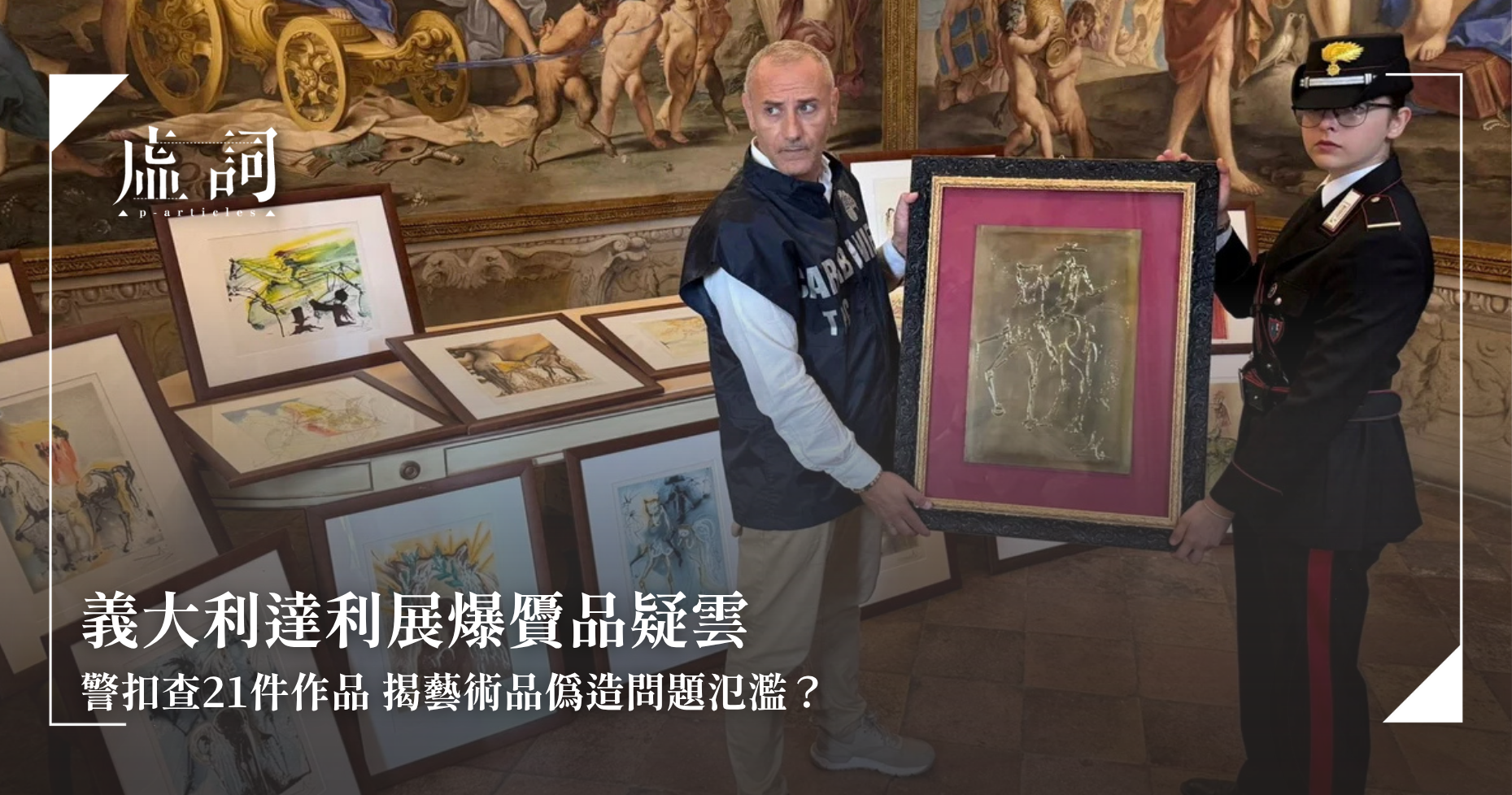 義大利當局近日對一場以西班牙超現實主義大師達利為題的展覽執行查扣行動,從義大利帕爾瑪(Parma)Palazzo Tarasconi 展出場地扣押 21 件疑為贗品的藝術品。該展以《達利:藝術與神話之間》(Dalí, Between Art and Myth)為名,先前曾在羅馬 Museo Storico della Fanteria 展出數月,後於 9 月27日移至帕爾瑪開幕,共展出約80餘件作品。