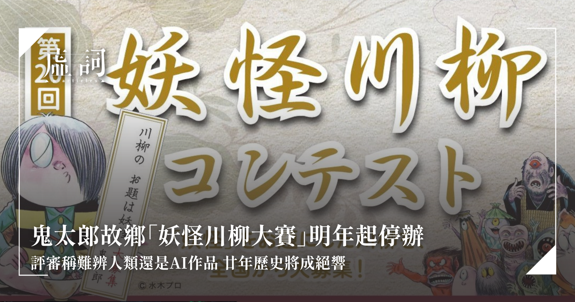 以「鬼太郎故鄉」享譽盛名的日本鳥取縣境港市,其境港觀光協會近日拋出震撼彈:已舉辦近二十載的年度文化盛事「妖怪川柳大賽」,將於第 20 屆圓滿落幕後正式畫下句點。主辦方坦言,生成式 AI 科技的飛速發展,導致評審團隊難以區分參賽作品究竟出自人類手筆抑或是 AI 生成。因此經過慎重考量後,決定明年起停辦比賽。