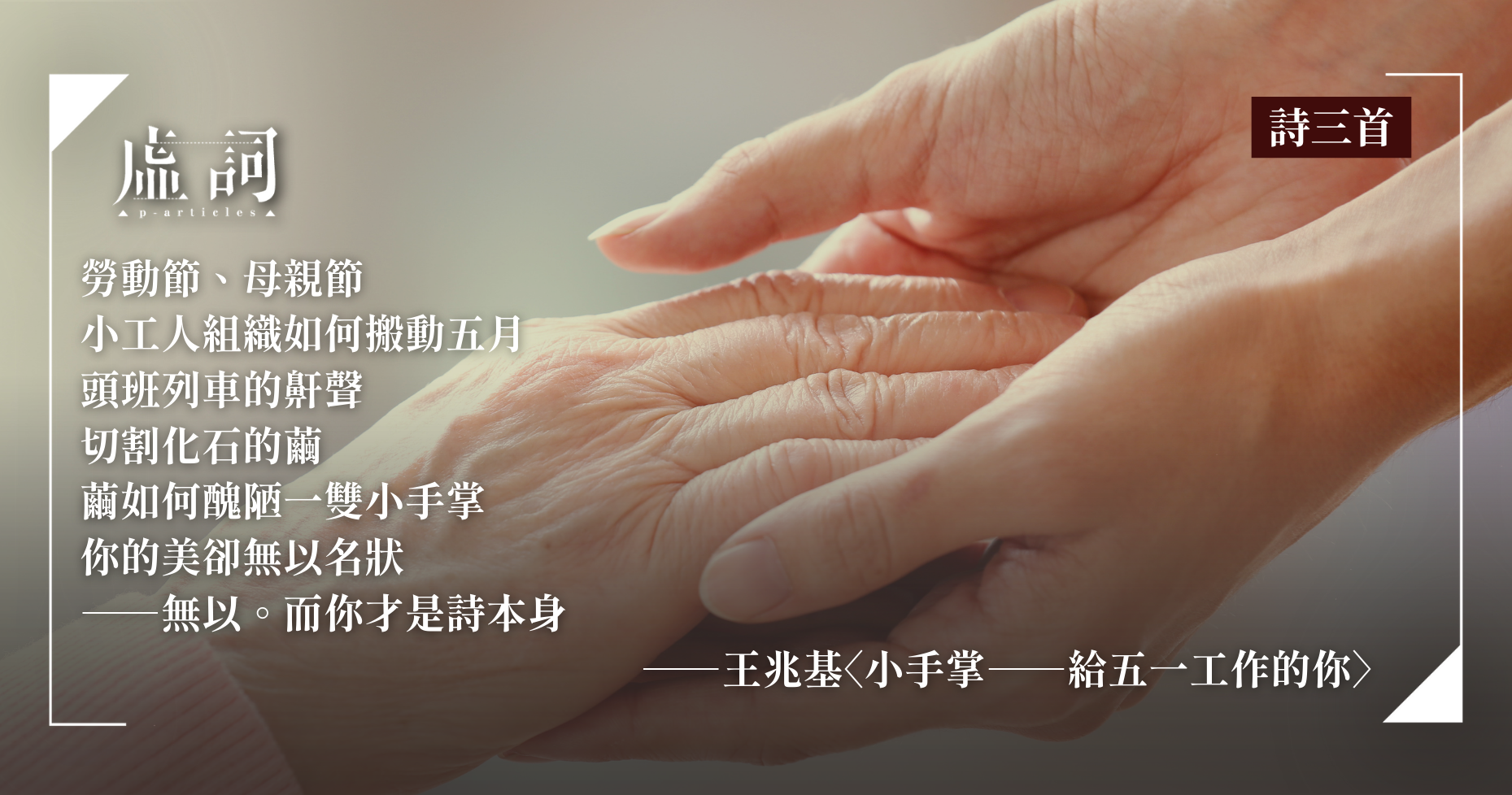 讀詩三首。潘國亨傳來詩作〈My Dear〉,以父母為對象,探索性別身份與家庭角色的複雜性與流動性,質疑傳統性別的規範,揭示出身份的流動與不完整性;徐竟勛的〈雉雞〉,描寫在面對生命中的責任與期待時所經歷的掙扎與轉變,表達出對超越困境、重獲新生的渴望與希望;王兆基以〈小手掌——給五一工作的你〉一詩獻給在勞動節工作的母親,向眾母親無私的奉獻表達感激與崇敬之意。