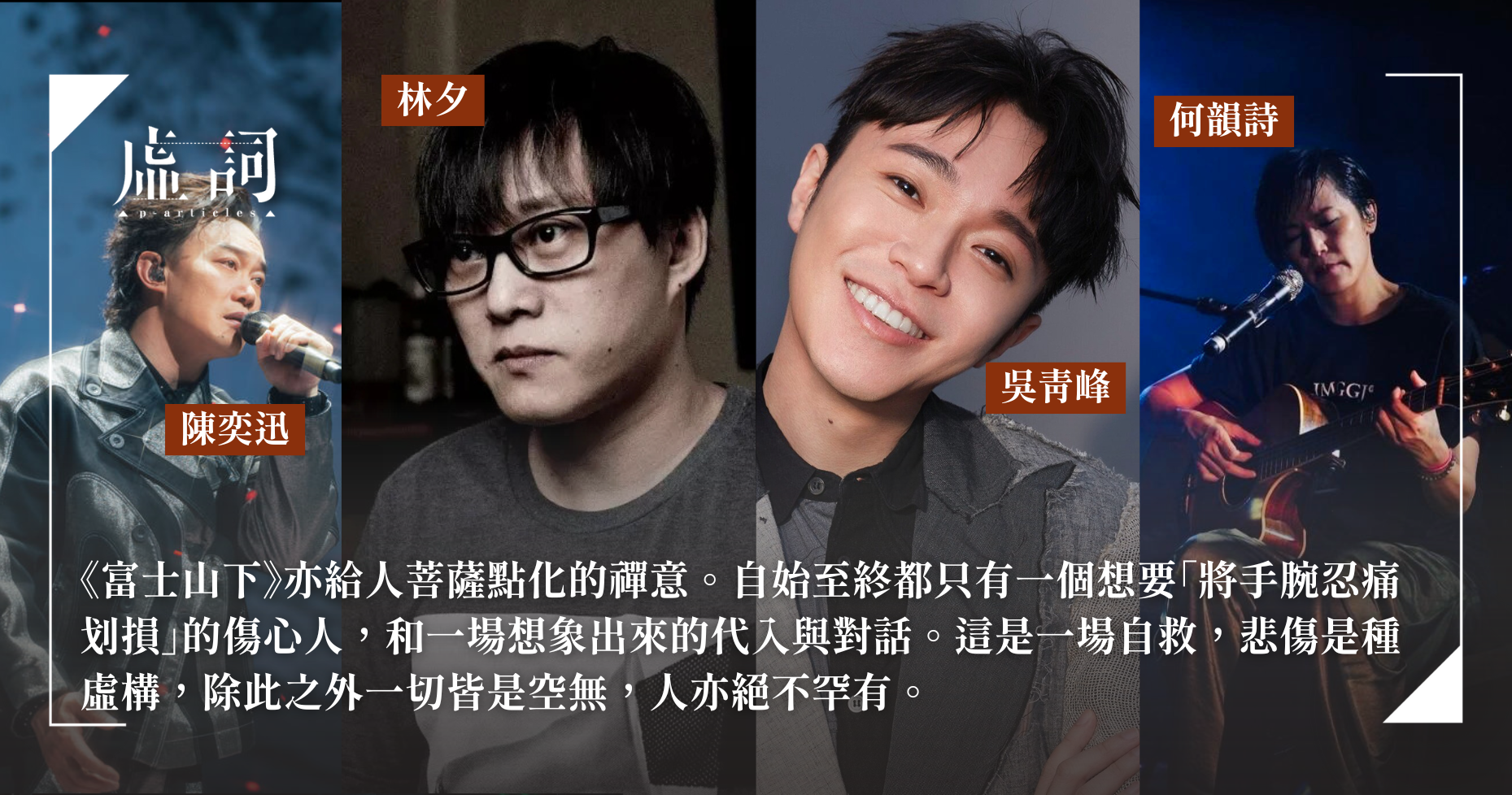 Cléo傳來歌詞評論,認為陳奕迅主唱、林夕填的《富士山下》與吳青峰給何韻詩填詞的《在青木原的第三天》,兩首看似無關的歌曲,均在歌詞中暗藏對「生死修行」的叩問。前者,林名仿佛化身觀音陪伴傷心人在絕望中放下執念;後者則以隱晦意象勾勒出生死邊緣的徘徊,從回憶的微光中尋找活下去的理由。兩首歌雖風格迥異,卻都指向同一個核心——音樂如何成為痛苦中的一線生機。