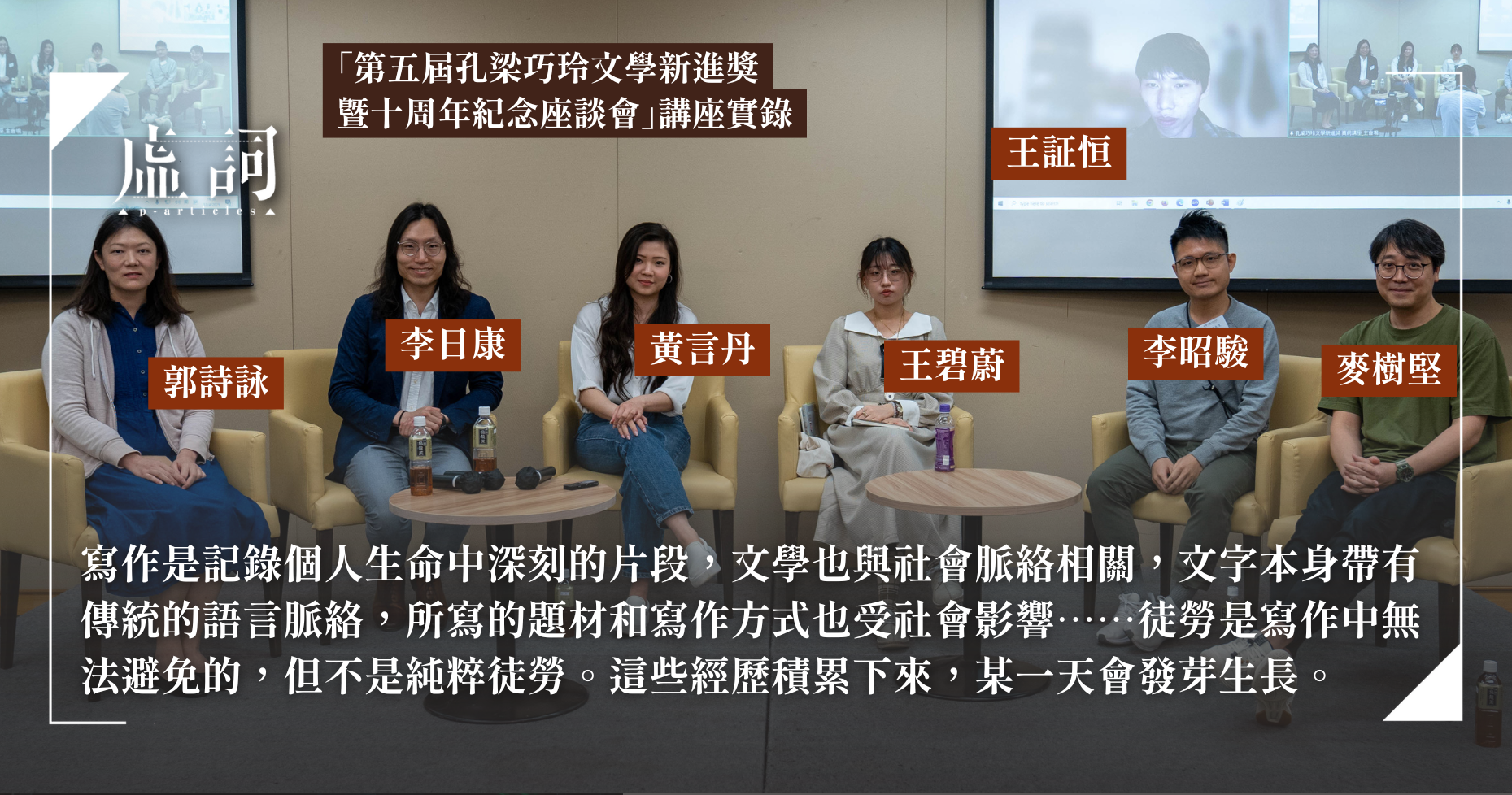 由香港浸會大學——香港文學推廣平台主辦的第五屆「孔梁巧玲文學新進獎」適逢今屆為十周年,大會特以舉辦「我們所看見的未來」賽前紀念座談會,邀請歷屆得獎者,包括李昭駿、王証恒、王碧蔚、黃言丹,以及三位特邀嘉賓麥樹堅、李日康博士以及郭詩詠博士。會上得獎者大談寫作歷程展開,探索新時代下個人風格的追尋、環境變遷對創作的影響,以及文學的意義。作家分享了語言與空間的交互作用,如王碧蔚在日本尋找漢語鄉愁、王証恒在蘇格蘭書寫異鄉經驗。座談會亦觸及AI時代寫作的未來,與會者認為文學的核心在於人類的情感與生命痕跡,難以被科技取代。