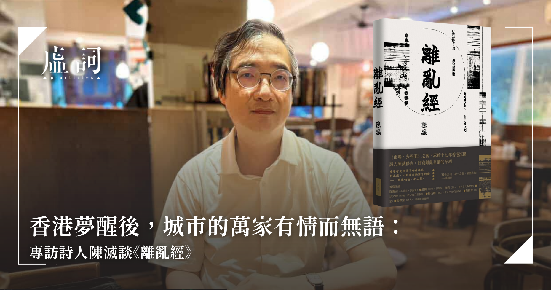 「像是一場通靈,你透過這些詩,與我、與40年來的香港對話。」聽陳滅談香港,像在說起一位故人,他在新詩集《離亂經》中以不同形式結構的詩歌,試圖去捕捉香港的意志,讓這個離魂幻影成形。可陳滅卻說,並不是他作為詩人高高在上地去「寫」香港,而是傷心失語的香港在強烈呼喚着他,在茶餐廳、在超速的紅色小巴、在舊樓間,要借詩人的口,唱出無聲的哀歌。一場香港夢醒後,陳滅如何以詩求脫離亂?