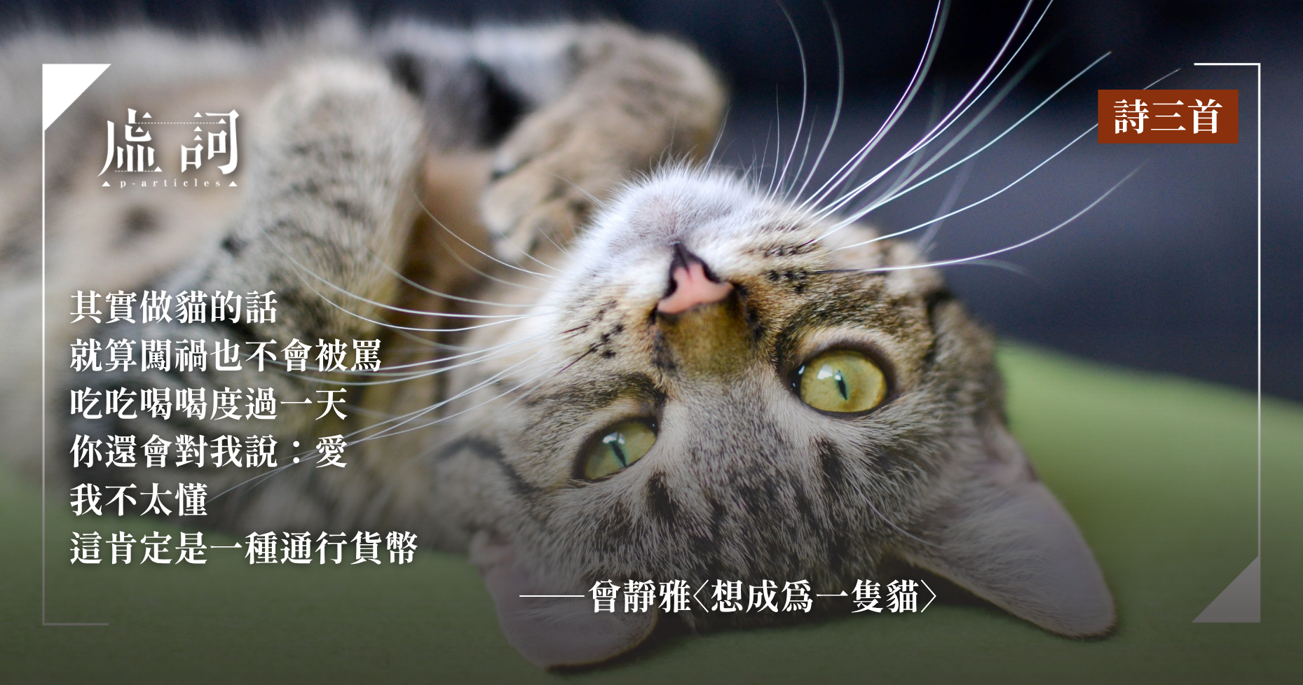 讀詩三首。飲江傳來〈擬ai書寫之「人一個行到街邊執個橙」〉用輕鬆幽默的語調,將政治、宗教、倫理及科技等主題並置,形成對當代權力與倫理的諷刺和反思;曾靜雅的〈想成為一隻貓〉將貓擬化成理想的生存狀態,藉此對比出現代人對簡單生活的憧憬與無奈;李曼旎以〈用舊了的女孩〉組詩描繪出女性在現代社會中可能面臨的身體焦慮、情感耗損與自我物化的困境與哀愁。