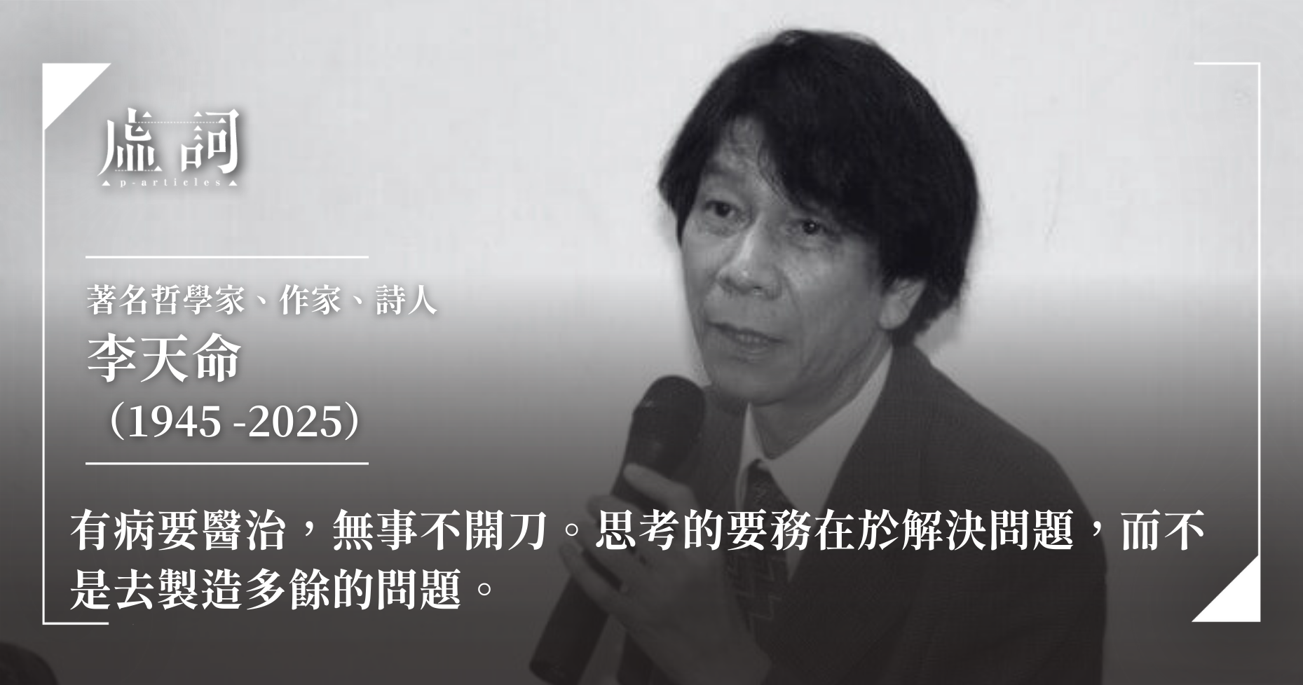 香港文學舘在社交媒體發文,著名哲學家、作家及詩人李天命於2025年11月26日凌晨辭世,享年80歲。李天命1975年起出任香港中文大學哲學系講師,直至2005年4月14日退休,教齡整整30年。任教期間極受學生歡迎,課堂經常爆滿,學生需提早到場「霸位」。退休後仍積極演講、寫作、出版,直到晚年。
