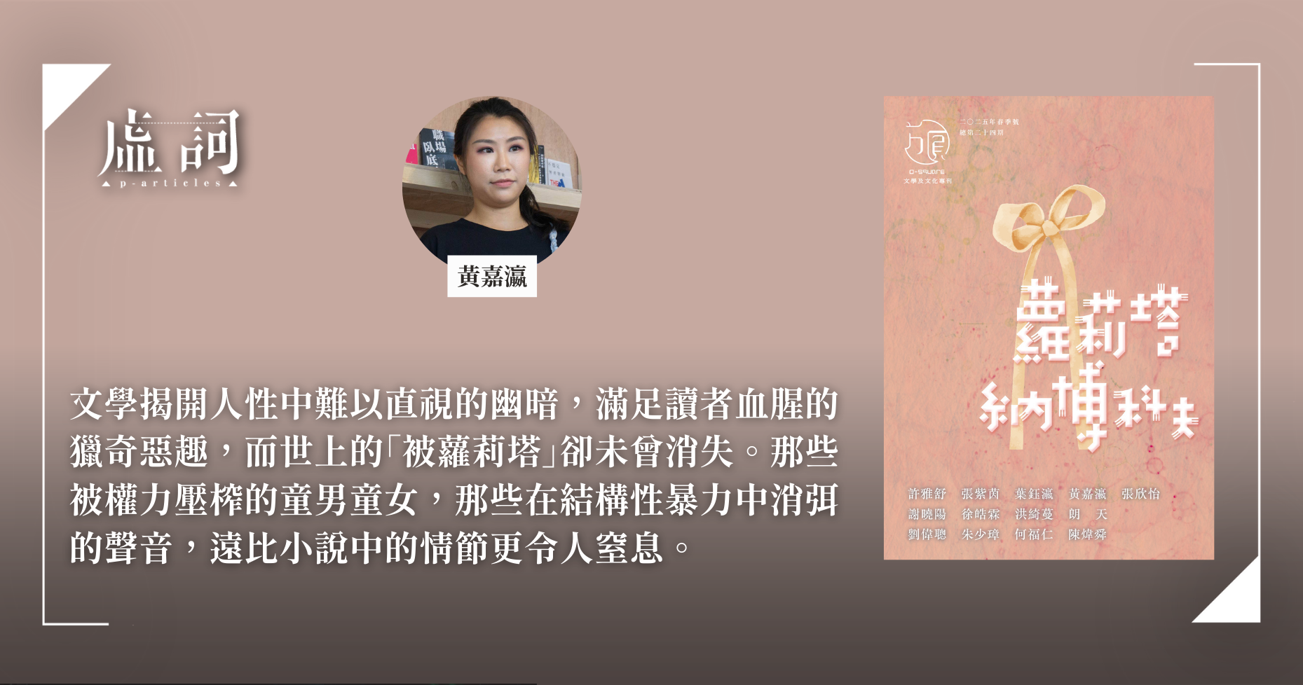 我撫心自問:為何蘿莉塔的故事總能一再觸動我們?文學揭開人性中難以直視的幽暗,滿足讀者血腥的獵奇惡趣,而世上的「被蘿莉塔」卻未曾消失。那些被權力壓榨的童男童女,那些在結構性暴力中消弭的聲音,遠比小說中的情節更令人窒息。願時代進步,現實不再生產更多蘿莉塔,杭柏特通通被關。