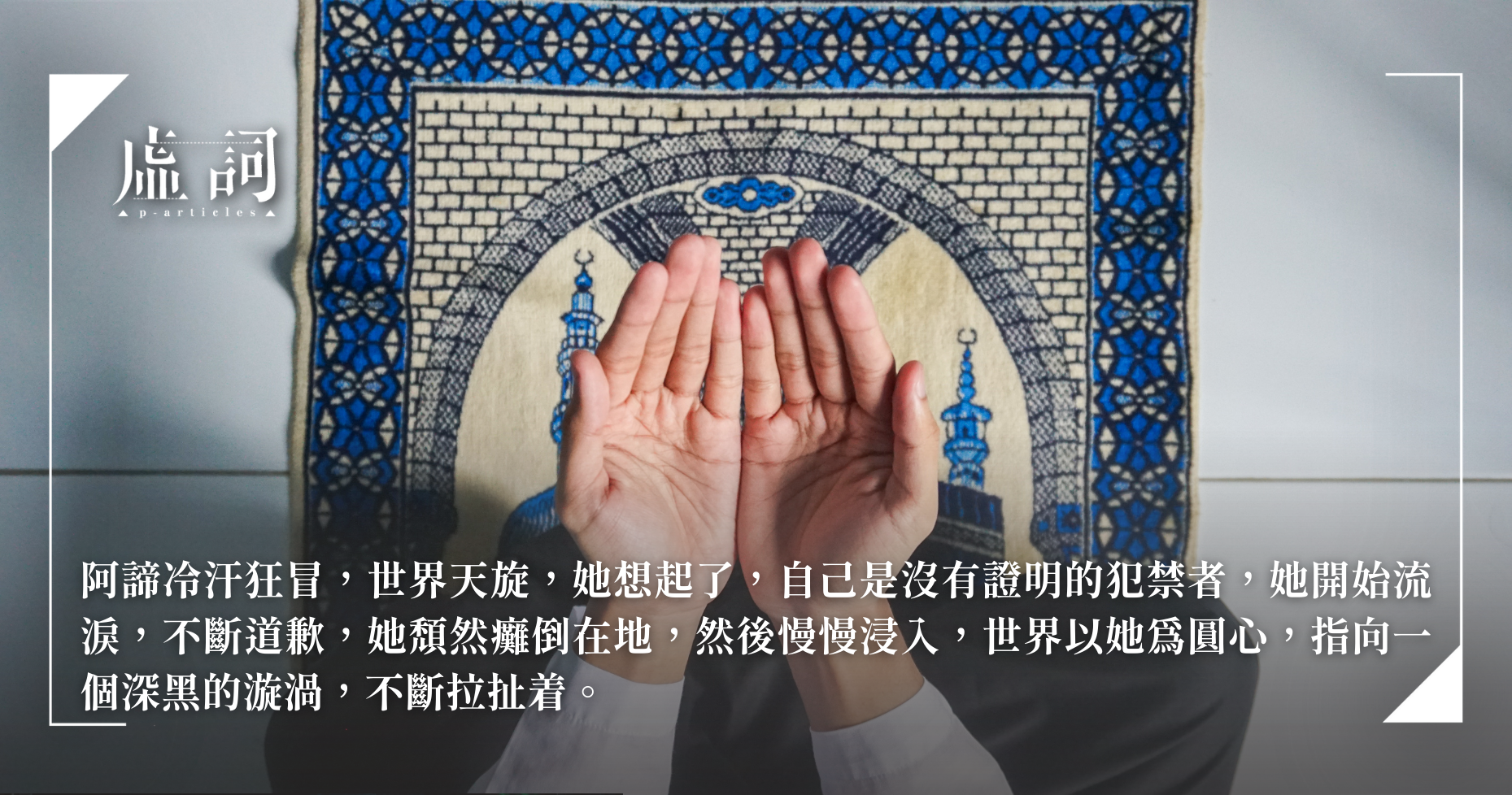 「麥加伯」是宜家傢俬販賣的鞋櫃,但高度適中,阿諦可以用彎腰的姿勢來祈禱。她把那個「麥加伯」帶回家中,心想,或許這正正就是信念的考驗。於是她就在上面做禮拜,一天五次,一個禮拜三十五次,她在上面,聽到了嘩嘩的濤聲,她打開了「麥加伯」,發現裏頭有一個海螺殼,她把她湊近耳朵,然後張開眼睛,她便來到了麥加,人、腳步、塔式起重機,她無法置信,一切卻是如此的真,「人世匆匆,有甚麼可怕的?」這是作家教她的,但忽然,她冷汗狂冒,世界天旋,她想起了,自己是沒有證明的犯禁者,她開始流淚,不斷道歉,她頹然癱倒在地,然後慢慢浸入,世界以她為圓心,指向一個深黑的漩渦,不斷拉扯着。她想回去,卻不知道家在何處,她想起了岸聲,但是如今洶湧的水聲,漸漸沒頂,她感覺到意識開始消失,她想再一次張開眼睛,但是她做不到,然後世界寂滅。