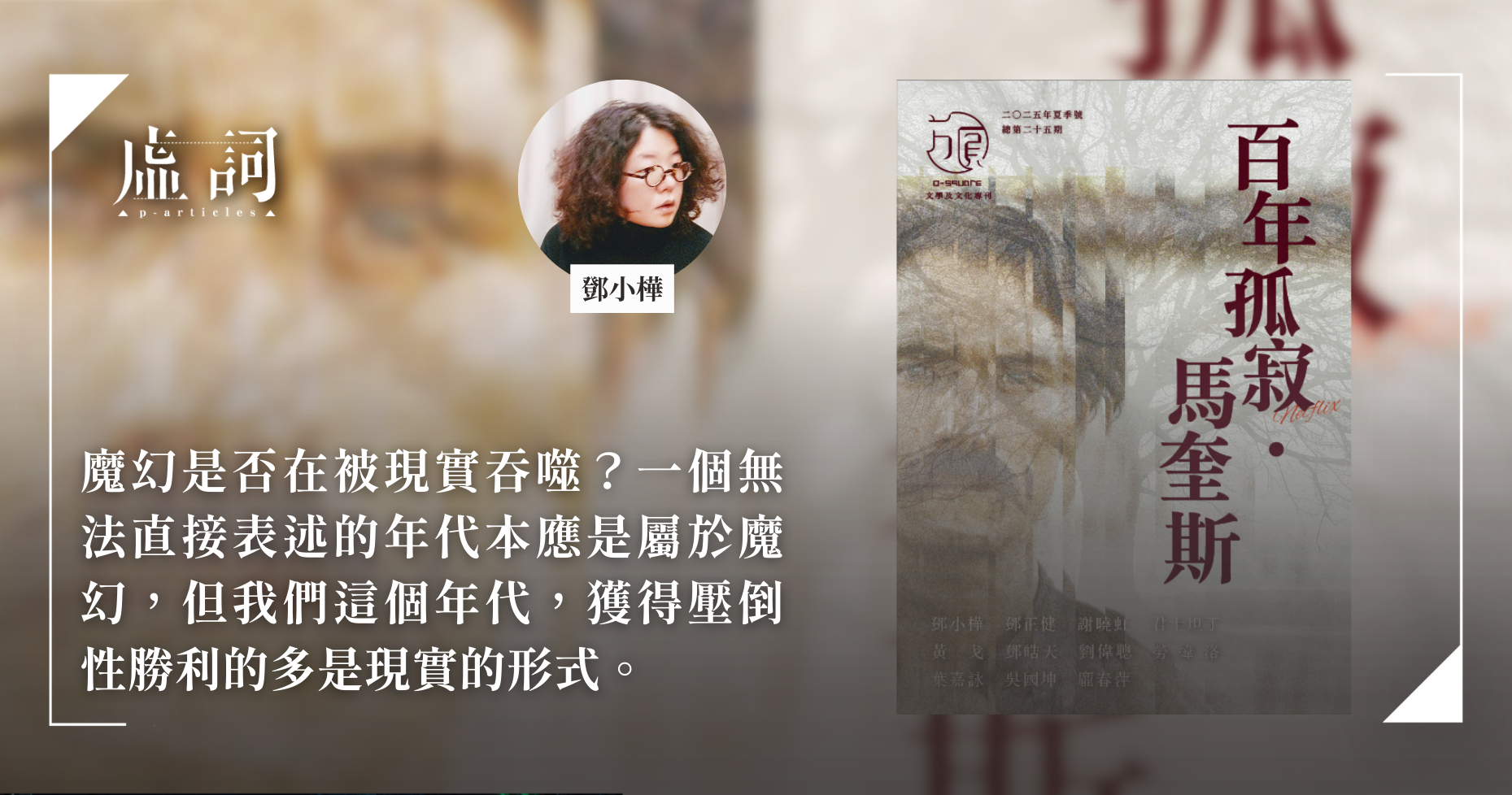 Netflix的《百年孤寂》在文藝社群之間引起熱議,一時間好像人人在看!但在本期組稿狀況來看,似乎能完成整部影集的香港文化人,其實不多;整個熱議的氛圍,還是在台灣炒起來的(Netflix在台灣設有分部辦公室),而在炒的人可能也沒看完全部。影劇耗時太長,沒看完不能勉強,所以今期「驅馳」部份的對談,改以一篇論述代替。鄧小樺集中談Netflix《百年孤寂》的改編成功之處,極其挑剔的「文本怨婦」受到超渡,指出劇集放大性愛與革命,既有巿場元素而符合原著精神,只有「孤寂」被稍微放棄。鄧正健的論述則強於廣泛著論,從影集去得更遠,先瀏覽馬奎斯的作品群像再拆解他與「拉美文學爆炸」的細緻關係,指出馬奎斯其實若即若離;又從拉美國家的現實歷史與國際政治關係,解讀馬奎斯的政治指涉。魔幻寫實是否有衰亡消退的傾向?本期創作部份的謝曉虹,本是香港魔幻寫實代表人物之一,但她今次交來的虛構小說設境非常現實,最魔幻的是豆豆不可解的變得沉默(還有其它人也和她一樣),但那在我們看來又是何等的現實。魔幻是否在被現實吞噬?一個無法直接表述的年代本應是屬於魔幻,但我們這個年代,獲得壓倒性勝利的多是現實的形式。連視覺藝術中的魔幻寫實都不易找,我們好不容易才找到Konstantin Bessmertny。