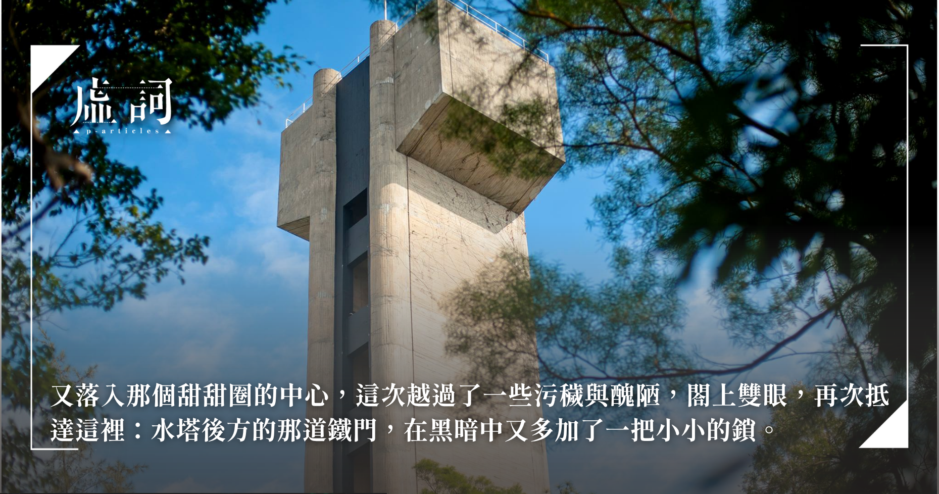 黑色電扇也在自己的馬達旋律裡搖頭晃腦,從左到右,從右到左。聽著瀑布水聲的安靜午後,我癱倒在床上,好像又落入那個甜甜圈的中心,這次越過了一些污穢與醜陋,閤上雙眼,再次抵達這裡:水塔後方的那道鐵門,在黑暗中又多加了一把小小的鎖。