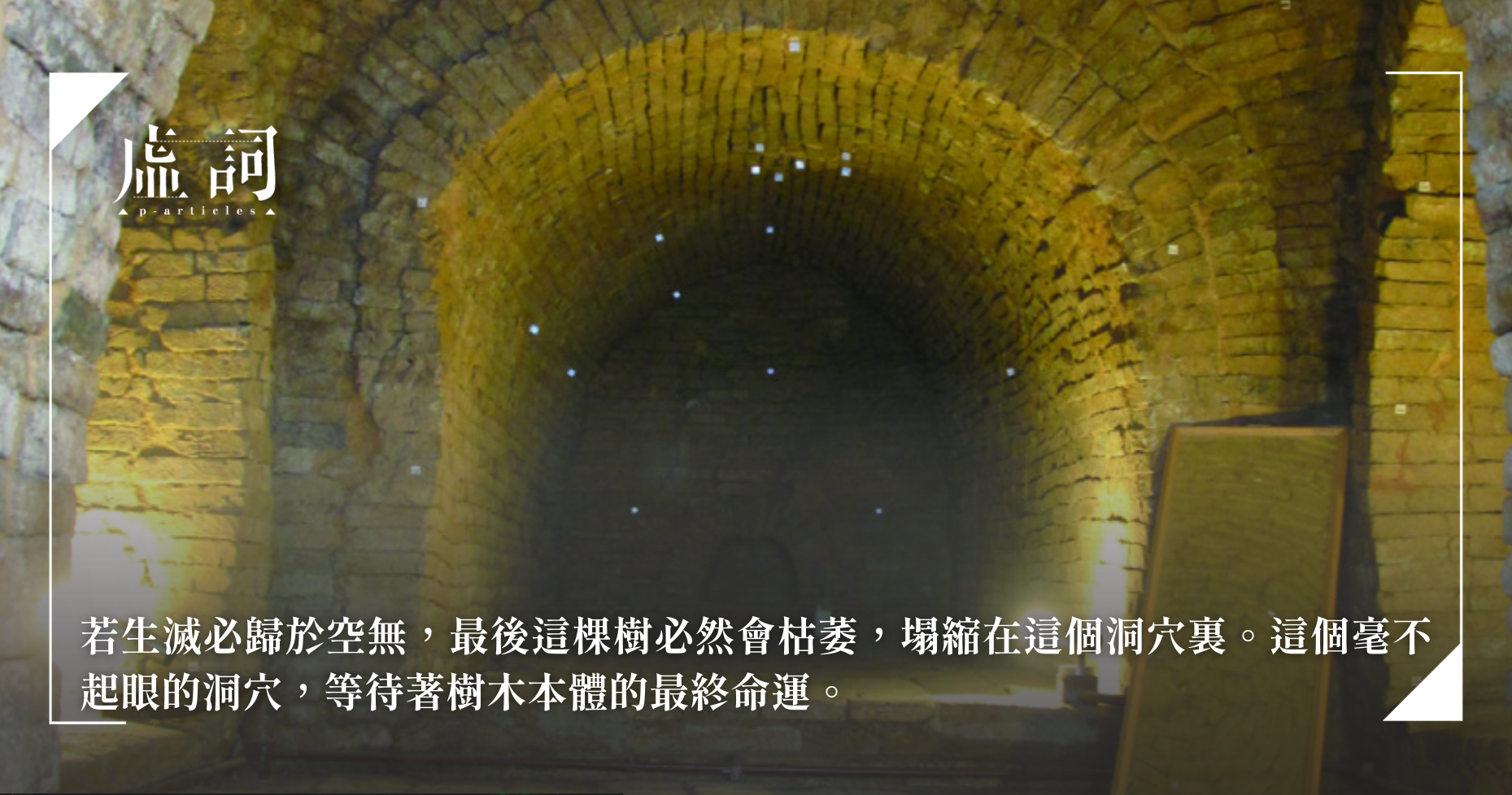 我所前往的墓穴,七十年前已被發現。它像一個樹洞,為樹皮的皺摺所埋藏。若生滅必歸於空無,最後這棵樹必然會枯萎,塌縮在這個洞穴裏。這個毫不起眼的洞穴,等待著樹木本體的最終命運。