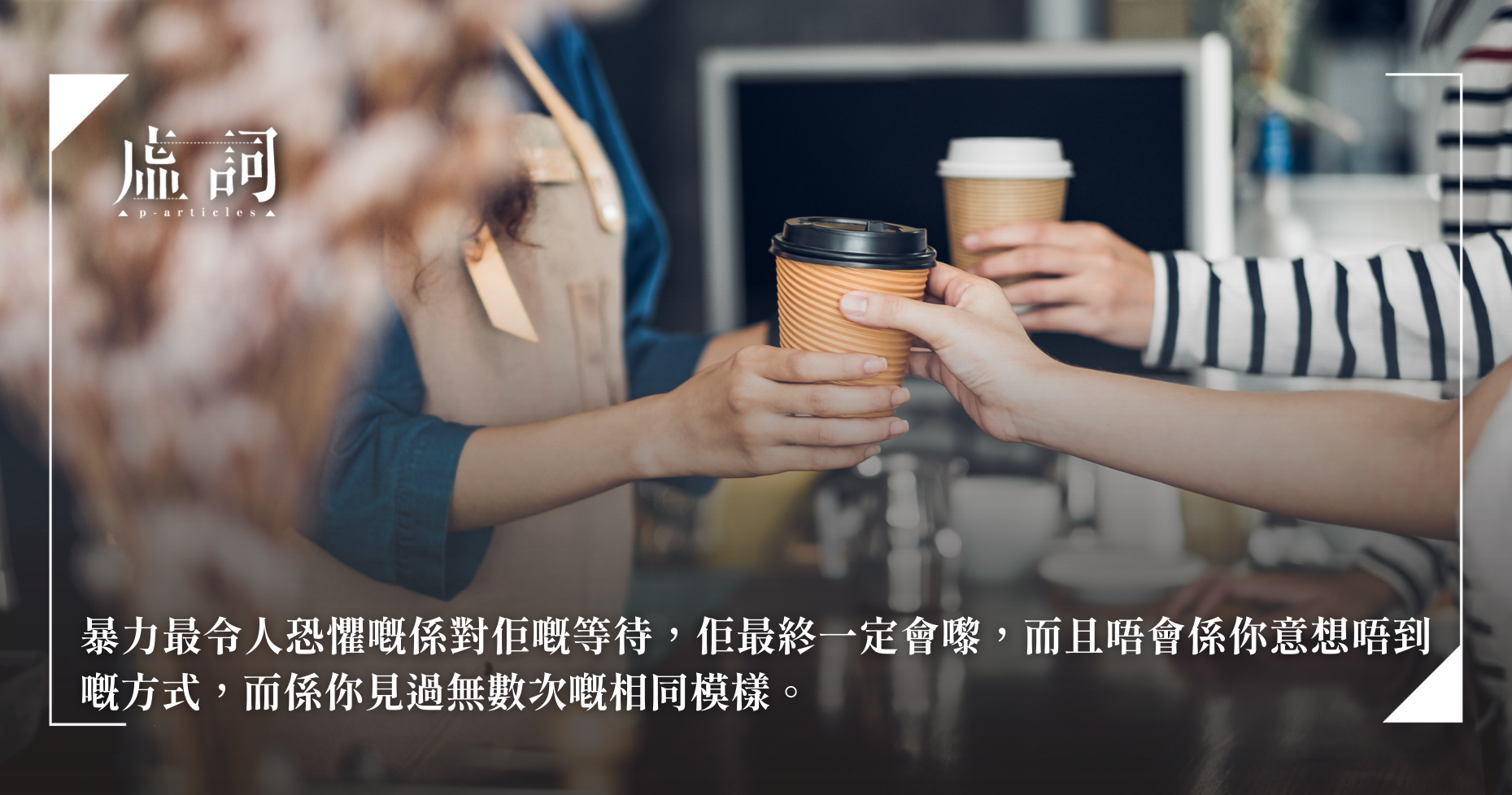 到六點半,終於得閒少少,Dora去馬路對面食煙撳電話,Mina都偷偷解鎖個mon,有14條新聞,29條WhatsApp,6條IG message。8點埋數,仲有啲客吃完嘢過嚟想飲杯咖啡,唯有同佢哋講唔好意思,呢一日內,Mina倒數唔清自己講咗幾多句唔好意思。8點15,Dora叫Mina收工先,Mina喺雪櫃同埋個牆罅之間,拎返個袋。「Bye Dora.」「Bye.」行到街尾,擰返轉頭,喺個六尺闊,十二尺深嘅舖頭入面, Dora仲喺度埋頭寫緊。