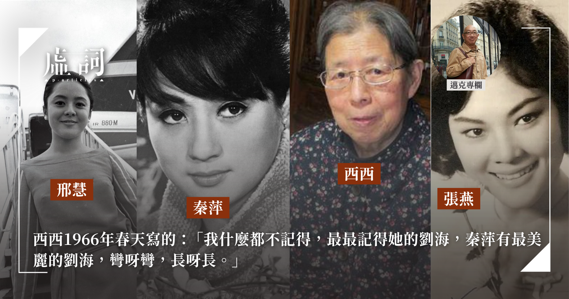 聽聞她息影後一度在啟德機場國泰航空貴賓室任職,執意過普通人生活,照片極少出現在娛樂版。江青貼的這張額外難能可貴,拍於她得病前兩年,不但精神奕奕而且數十年如一日,就像西西1966年春天寫的:「我什麼都不記得,最最記得她的劉海,秦萍有最美麗的劉海,彎呀彎,長呀長。」